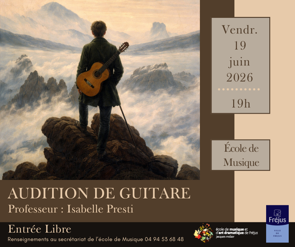 Nous vous donnons rendez-vous à l’école de musique le vendredi 19 juin 2026 pour découvrir ou redécouvrir les élèves de la classe de guitare du professeur Isabelle Presti qui se présenteront en audition à 19h.