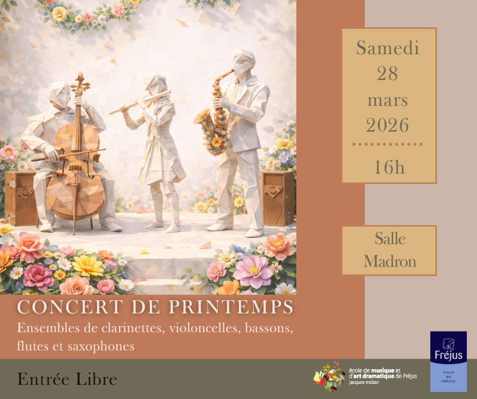 Rendez-vous samedi 28 mars 2026 à 16h00 à la Salle Madron (Tour de Mare). Au programme, venez découvrir ou redécouvrir les élèves des ensembles :
