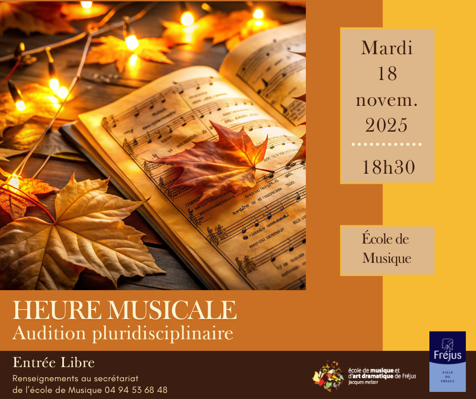 La première heure Musicale de cette année scolaire 2025-2026 se déroulera le mardi 18 novembre 2025 à 18h30 à l’école de musique.